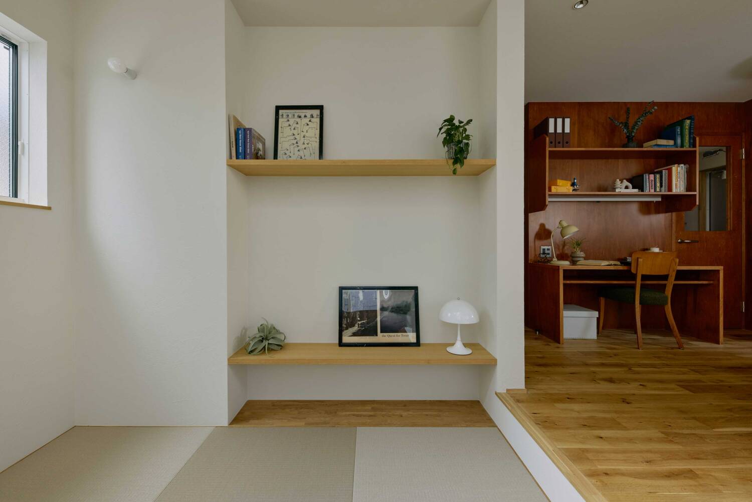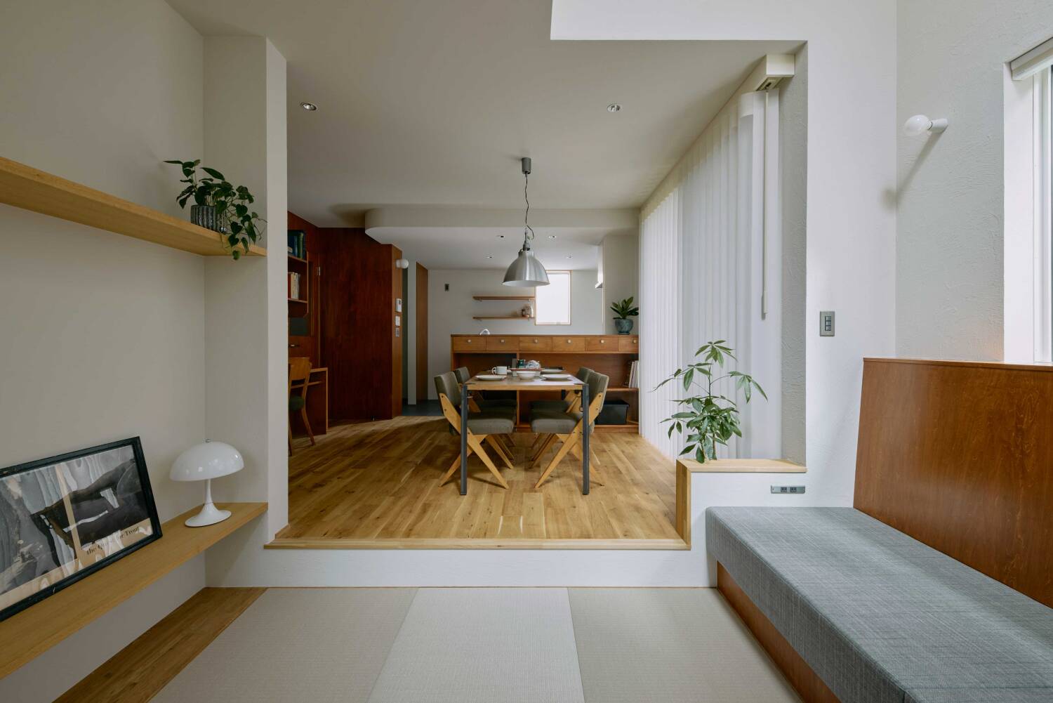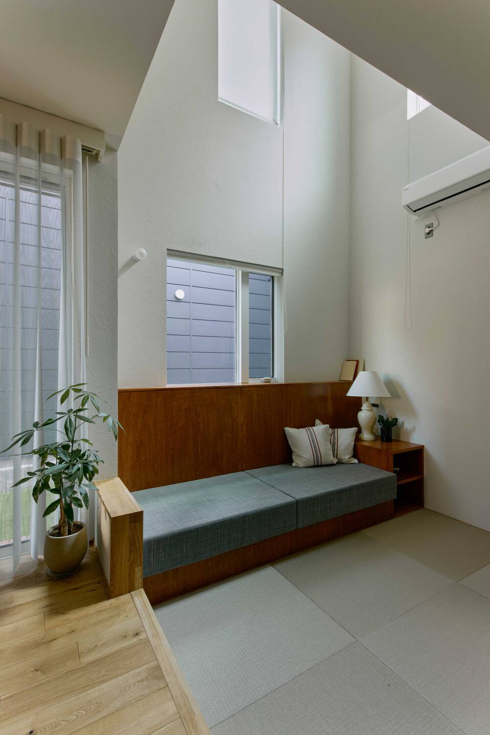 畳敷きの床には、空間にぴったりと設えられた造作ソファ。